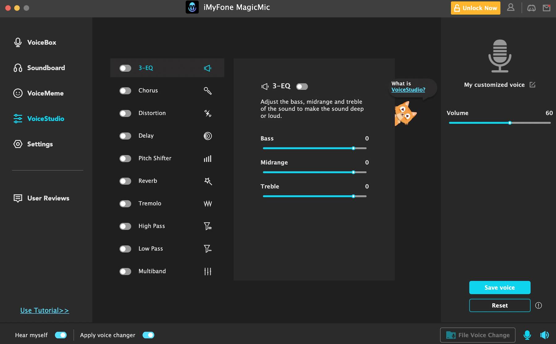- Customizable Creations: Design your unique voice using VoiceLab. Combine custom sound effects like pitch shifters, echo, and filters to create an original voice.
