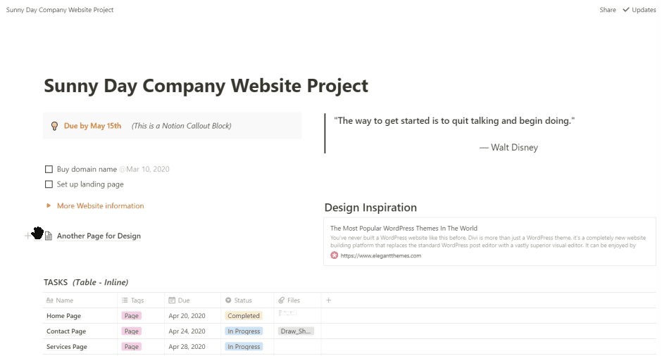 Be sure to explore more templates in Notion’s User-Submitted Template Gallery to see what other users have created. Some templates you might try are the Content Calendar, Design Tasks, Design System, Contracting Proposal, and Work Portfolio. Add any of these templates to your Notion Workspace and you now have a centralized Dashboard.