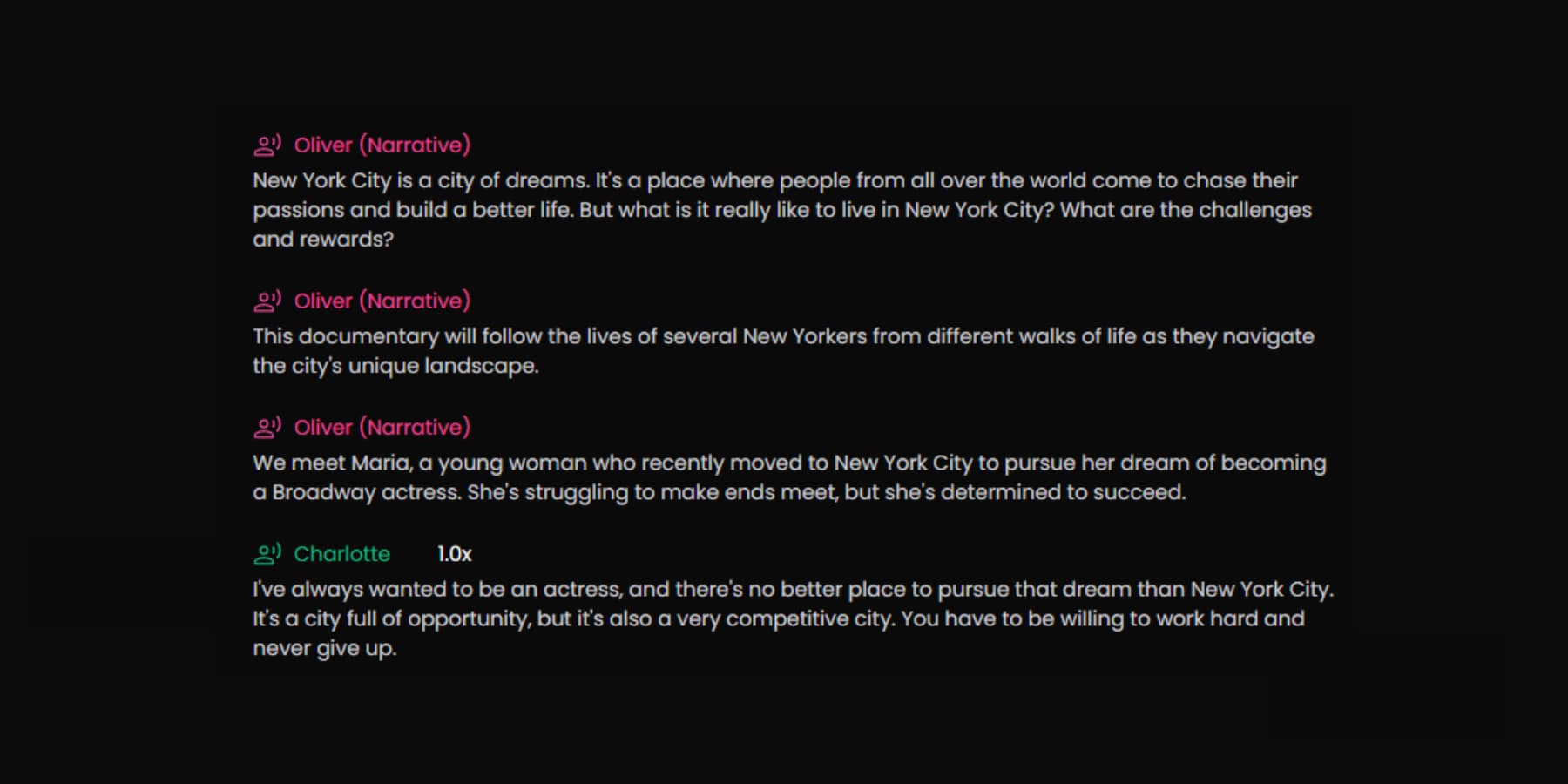 Voices are available in these speech styles, regardless of the speaker’s gender.
