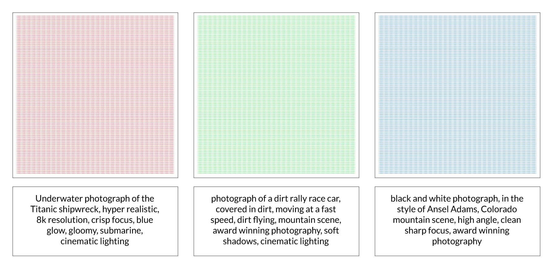 For an AI program to understand a wide range of prompts, it needs a large dataset of images (neural network) to work from. We’re talking hundreds of millions of images and their text descriptions. Training models scrape alt tags, captions, titles, and text descriptions from images on the internet. It’s important to note that the generated image doesn’t come from the training data. Rather, it comes from the latent space (more on that later) of the deep learning model. Deep learning models don’t see images the way we do. They see millions of pixel values for red, green, and blue (RGB).