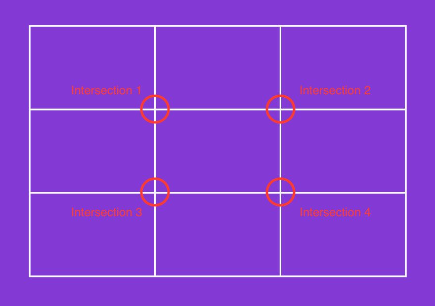 With this imaginary grid on your image, graphic or layout, you can easily place content near one or more of the main intersection points.