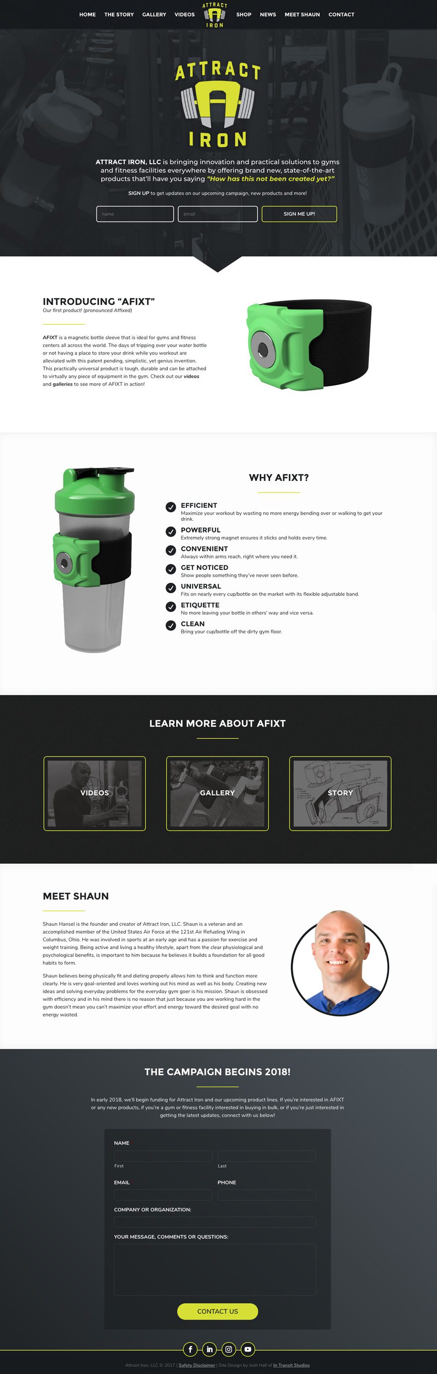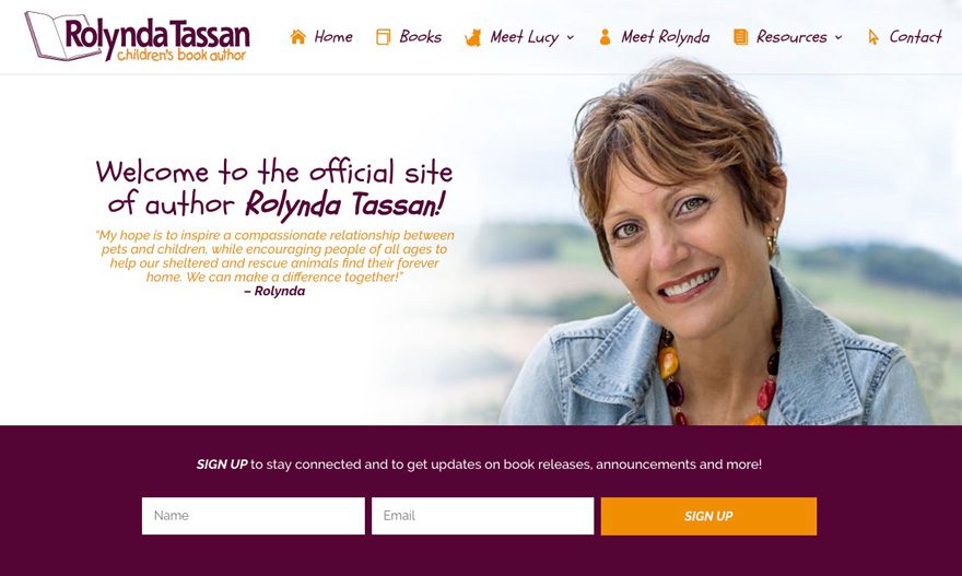 In this case, the client’s primary call to action for website users is to sign up for email updates so right off the bat, we have the logo popping out from a darker background image, a little bit of text with an immediate opportunity to sign up before even scrolling down. Ideally, you want to draw your user’s eye to your call to action. That’s where have a vibrant accent color or effect on a site is extremely beneficial.