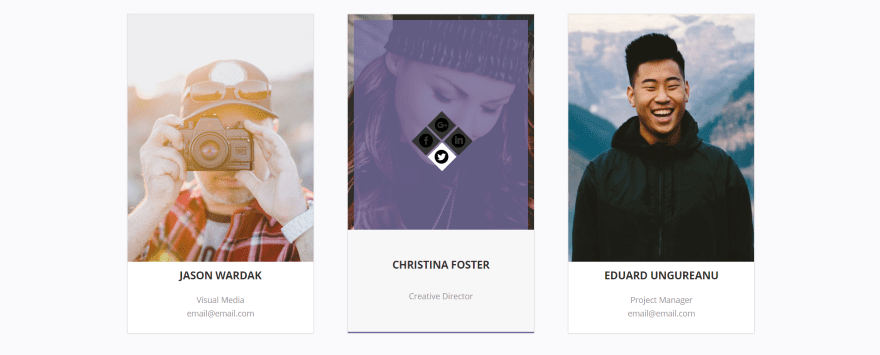 Here’s the Style2 layout. It adds an overlay with social links on hover.
