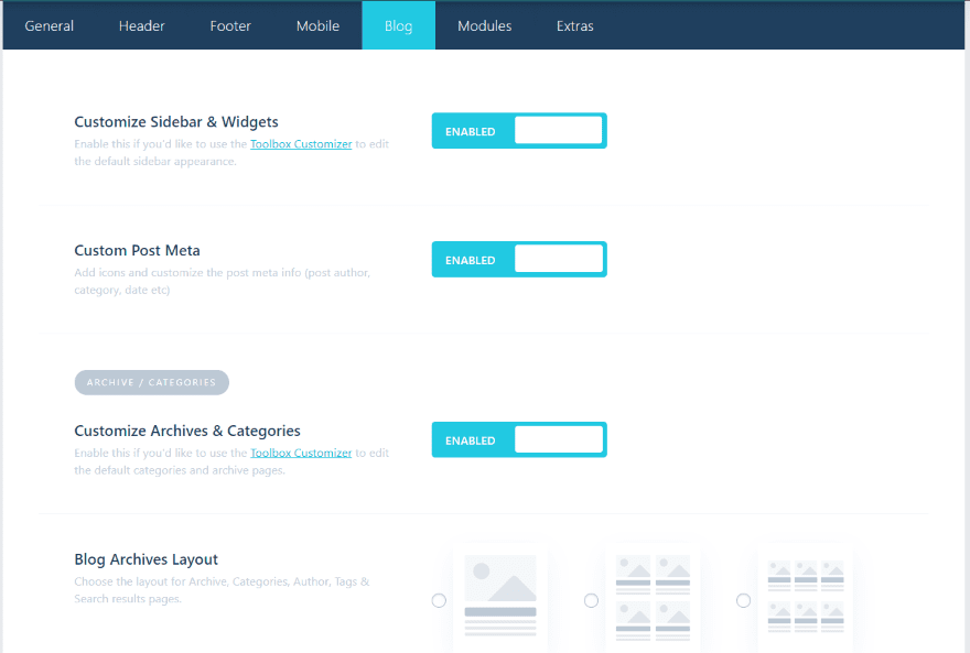 Divi Toolbox Blog Settings