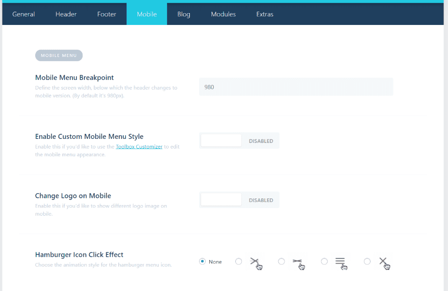Divi Toolbox Mobile Settings