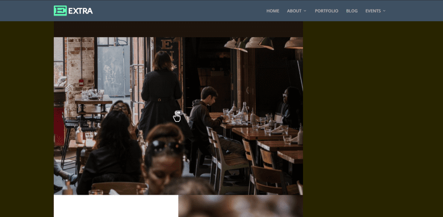 I’ve added a brown overlay. The overlay itself adds an icon with a hand showing that the image can be scrolled. It uses an arrow to show it can be scrolled horizontally. The opacity level is set to 20% by default. I left it at the default setting.