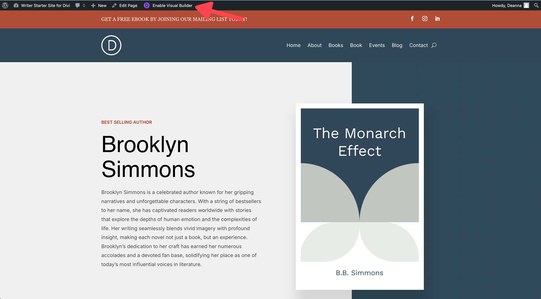 Every Divi Starter Site has everything you need to create a complete website in minutes, from core pages to Theme Builder templates to global presets. Let’s take a closer look at what’s included with the Writer Starter Site for Divi, so you’ll understand its phenomenal value.