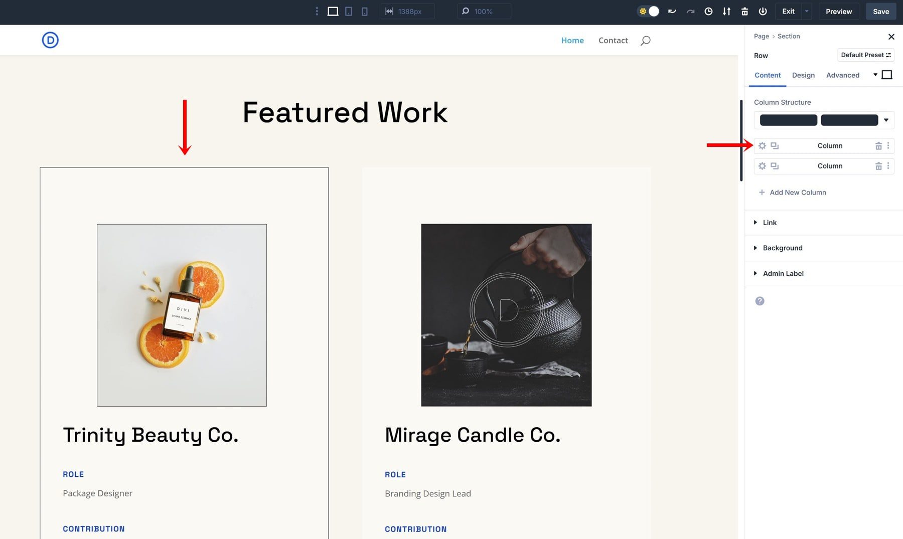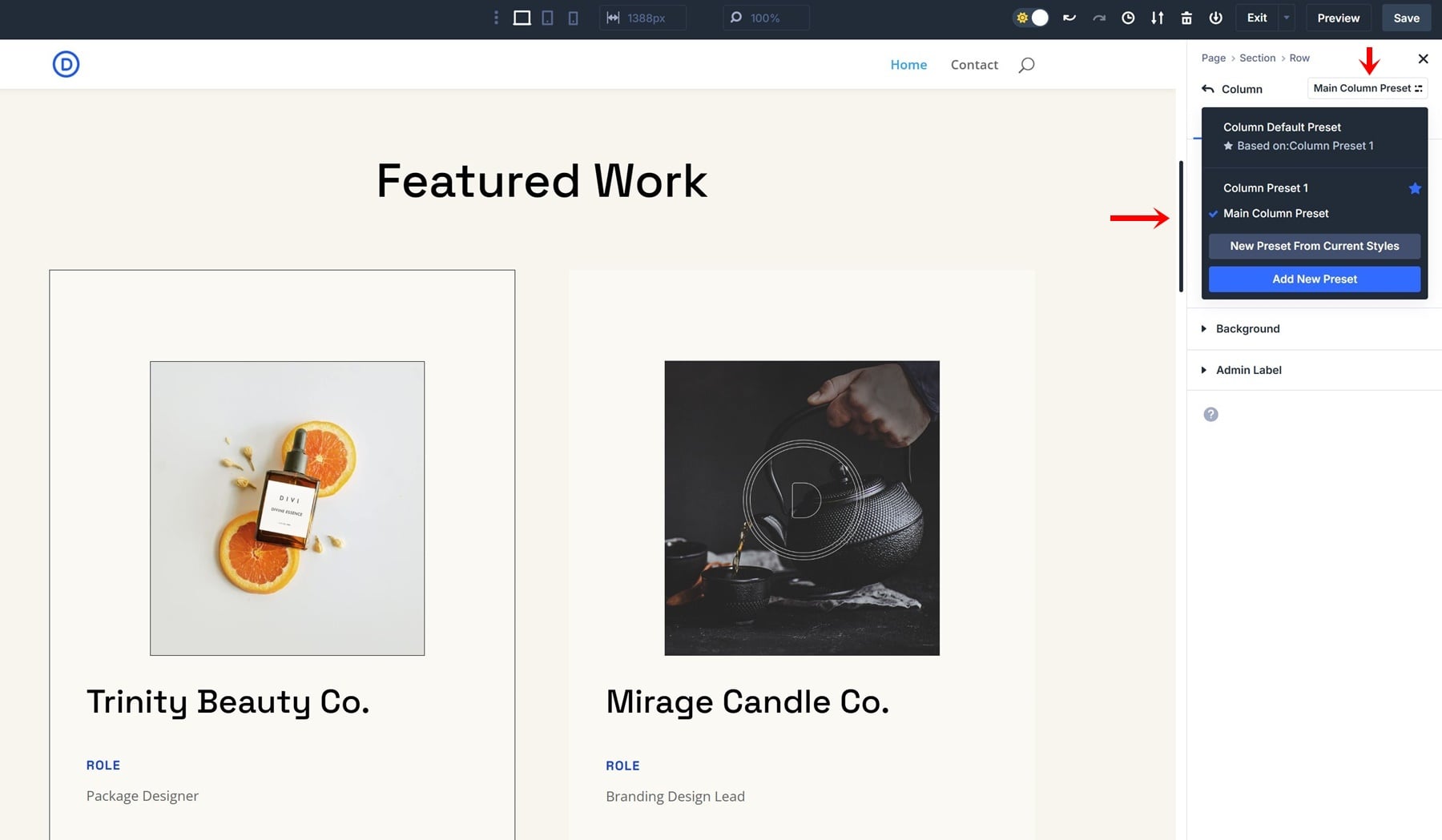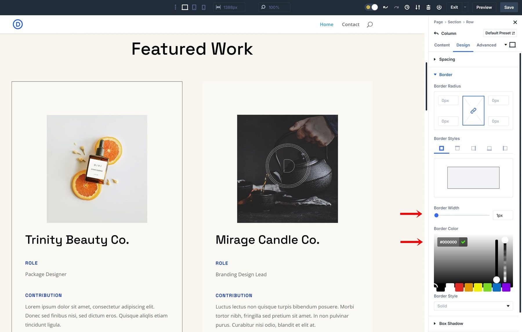 Creating an Option Group Preset is very straightforward; let’s go through the process of creating a border preset step by step. We’re using the homepage layout that comes with the Design Portfolio Layout Pack, but feel free to use any other layout of your choice.