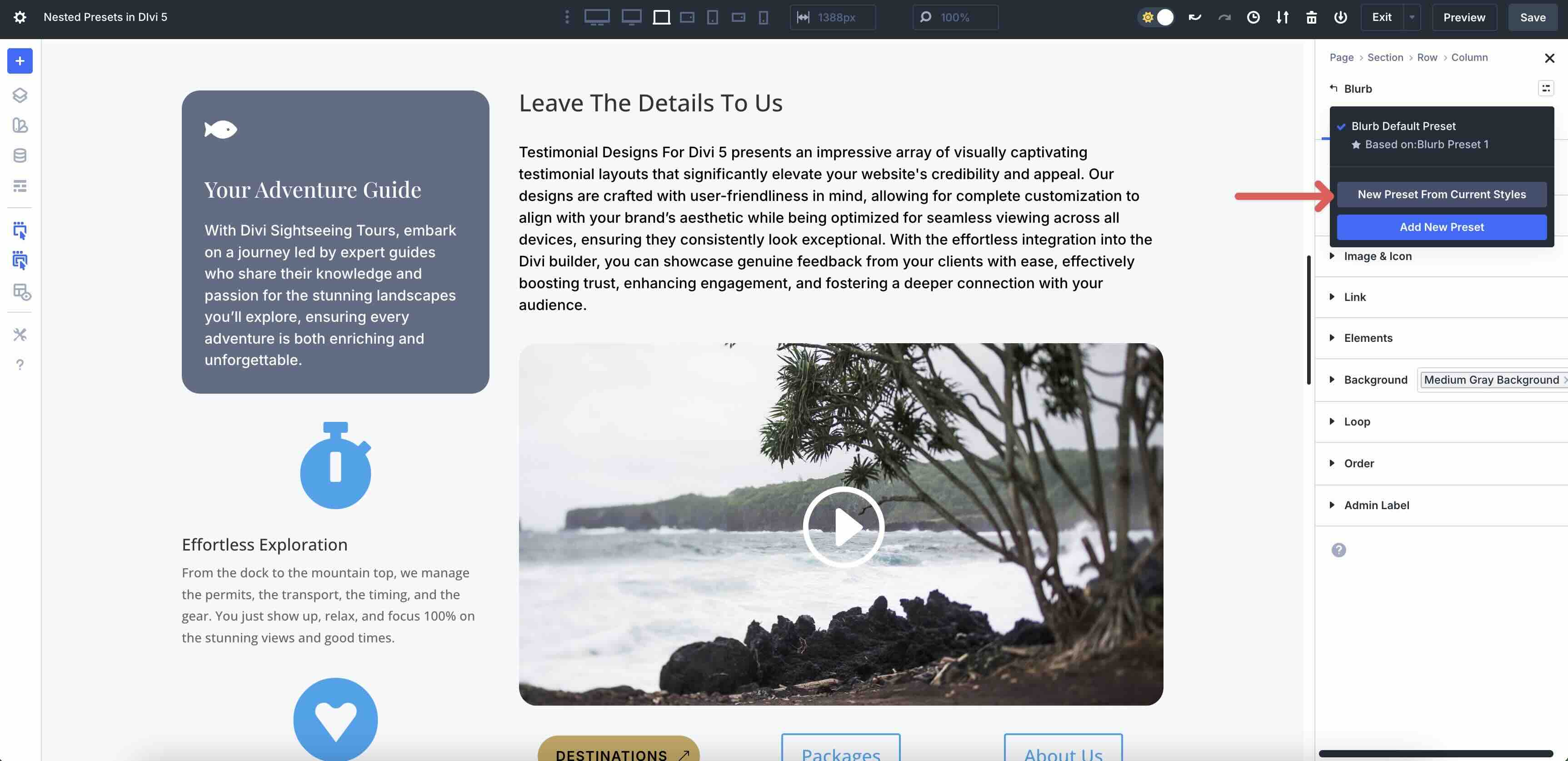 In this section, we’ll walk you through creating an Element Preset, Options Group Preset, and Nested Presets. By the end, you’ll have a better understanding of how they work and what an asset they are to Divi users of all skill levels.