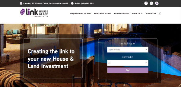 Link House and Land is one of the many VGH Realty sites (which are powered by Divi). This site uses a CTA overlay in parallax, a link to available homes, an about section, links to the various properties within blurbs, and an email opt-in form. The site includes a home search and images with hover animation that show icons for the home’s features. Homes are displayed in a slider with details and a map.