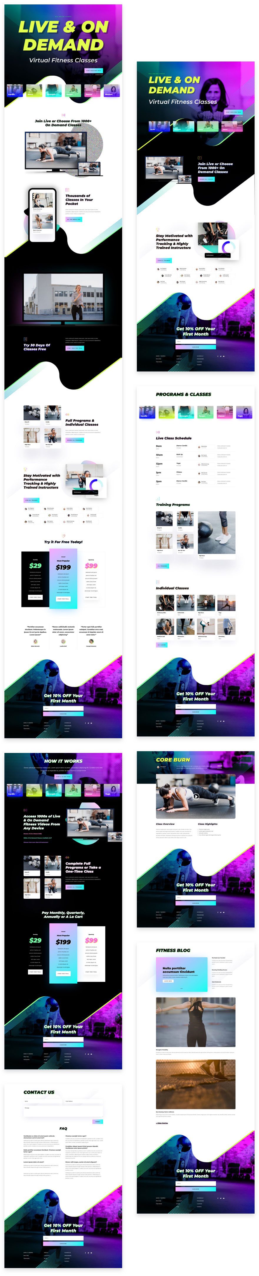For this week, our design team has created a brand new Virtual Fitness Layout Pack. Virtual Fitness is a thriving industry. Fitness companies and instructors deserve an online presence that inspires their audience. And this Virtual Fitness delivers! The design is bold, clean, and strikingly colorful. And the included page layouts will make it easy to promote various programs, live and on-demand classes, and much more.
