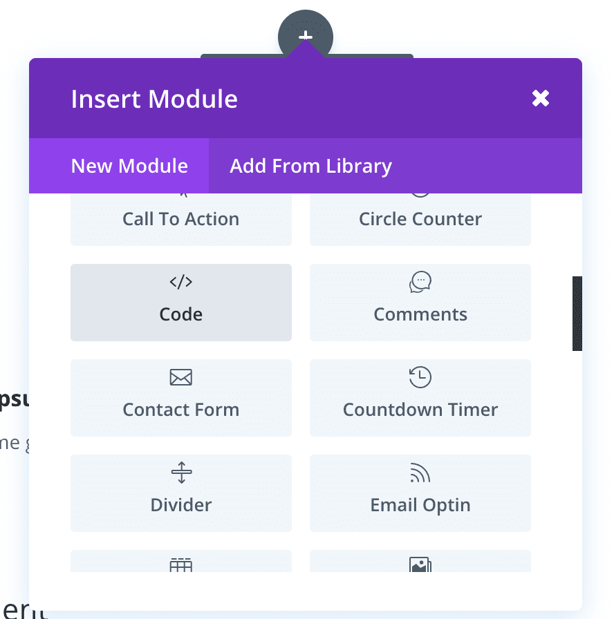 Open the “Insert Module” window and select the Code Module to get started.