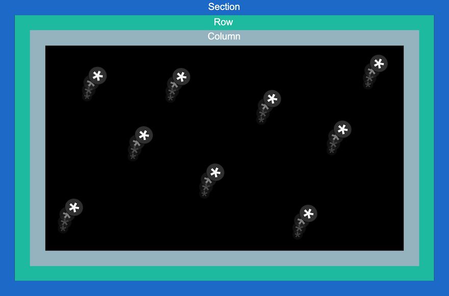At this point, we have essentially created a fullscreen canvas that allows us to fill the column with icons.