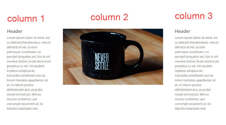 Now you should have one row with 2 columns with the first row containing an image and the second row containing text. I’ve labeled the columns for you in the following image.