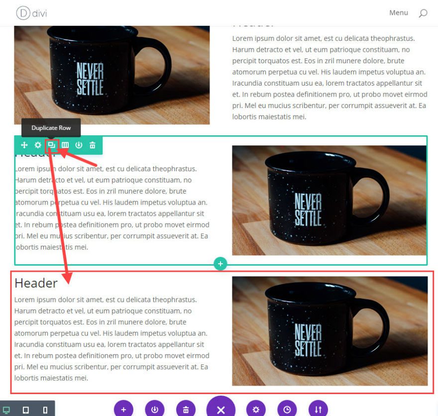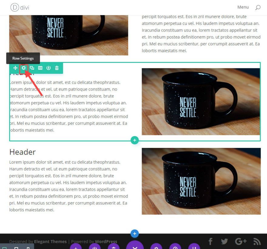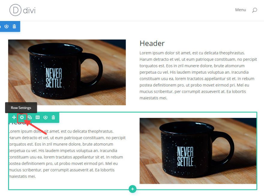 Before we edit the new duplicated row, open the Row Settings in the second row.