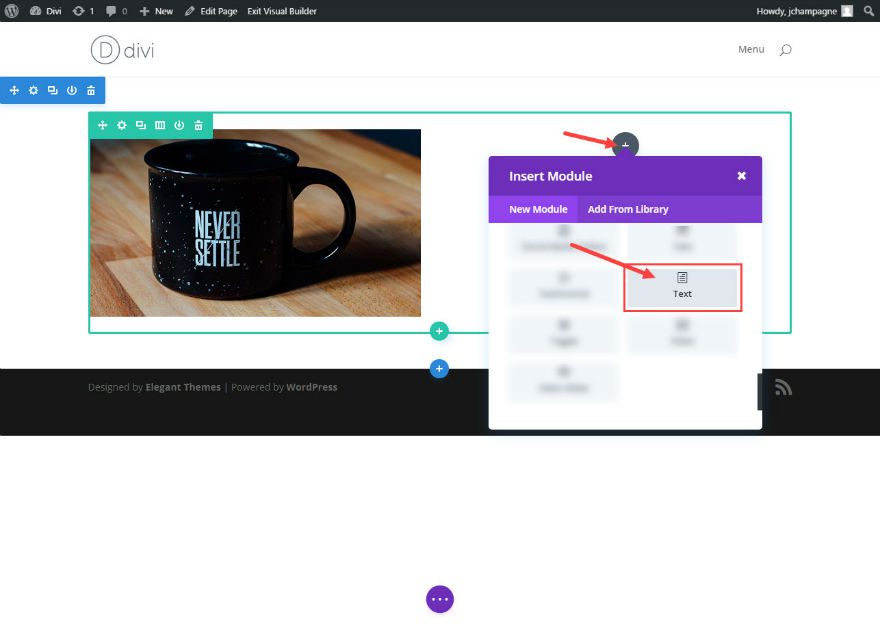 Next, insert a text module in the second column of your row.