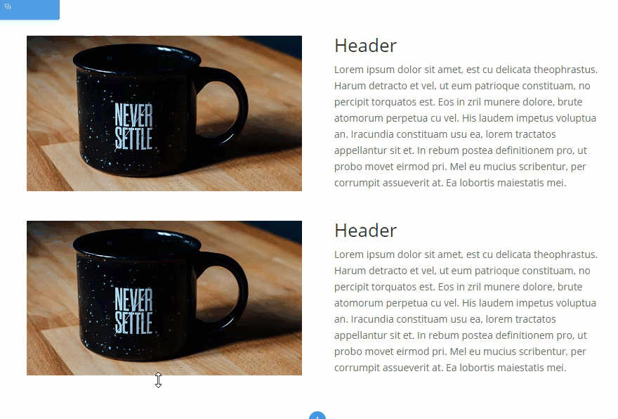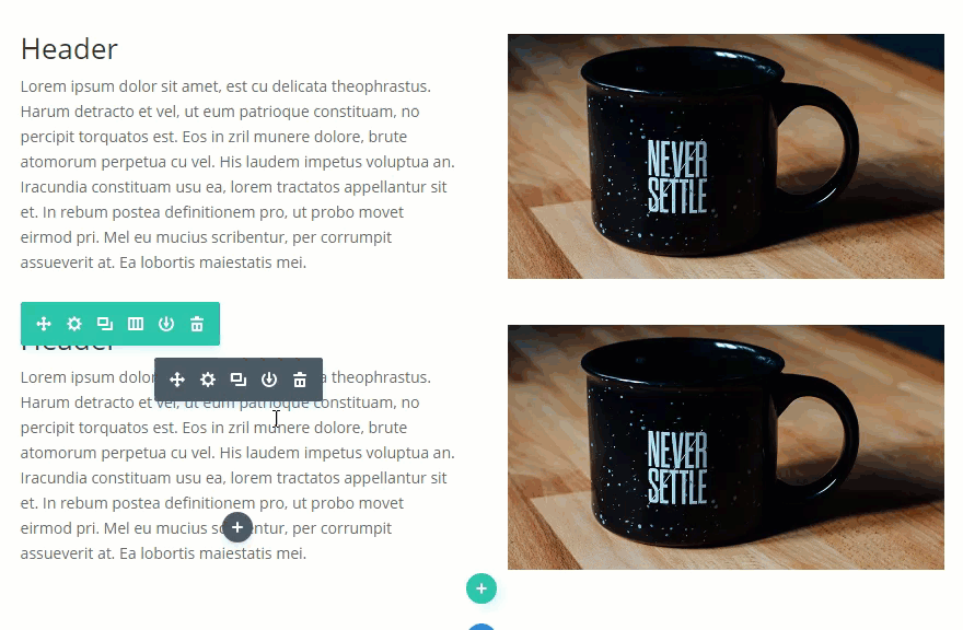 On your second row (the duplicate row you just created), drag the image module over to the second column and drag the text module over to the first column.
