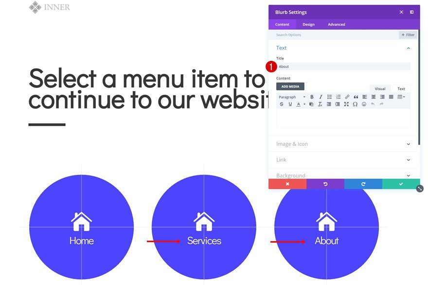 Now that weโve selected the homepage, we can start building our icon navigation page. Go back to the page youโve created and switch over to Divi and its Visual Builder.