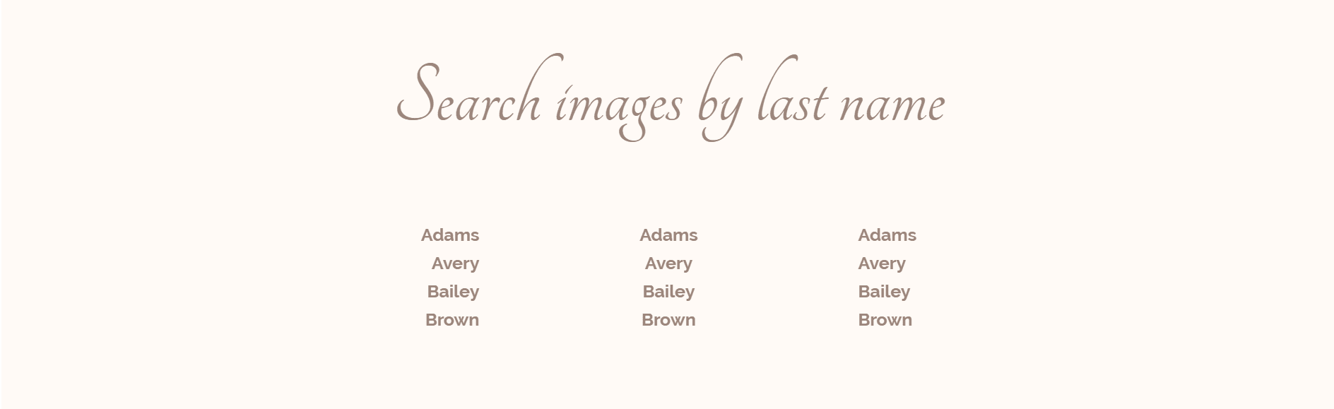 To start off, you need to show the list of last names and link them the section of the page where they’ll find the images.