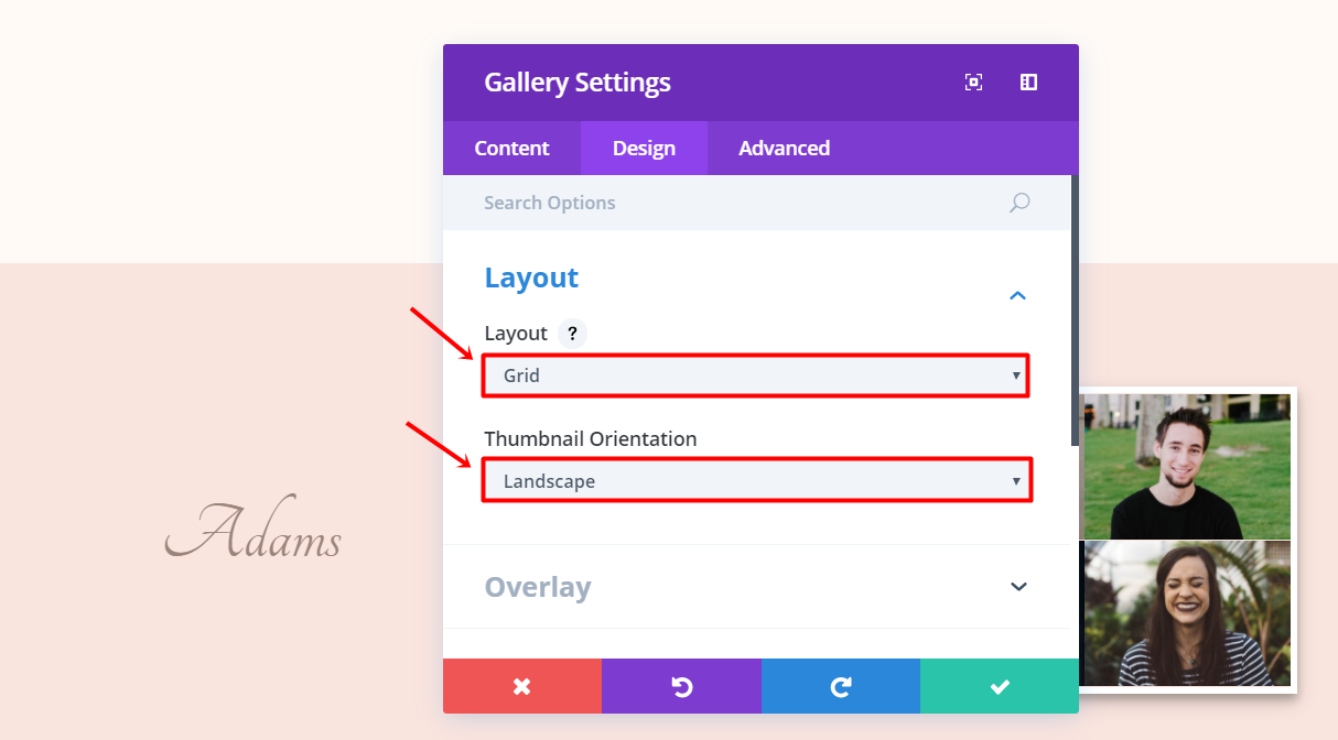 Next, go to the Design tab and make sure your Layout is ‘Grid’ and your Thumbnail Orientation ‘Landscape’ in the Layout subcategory.