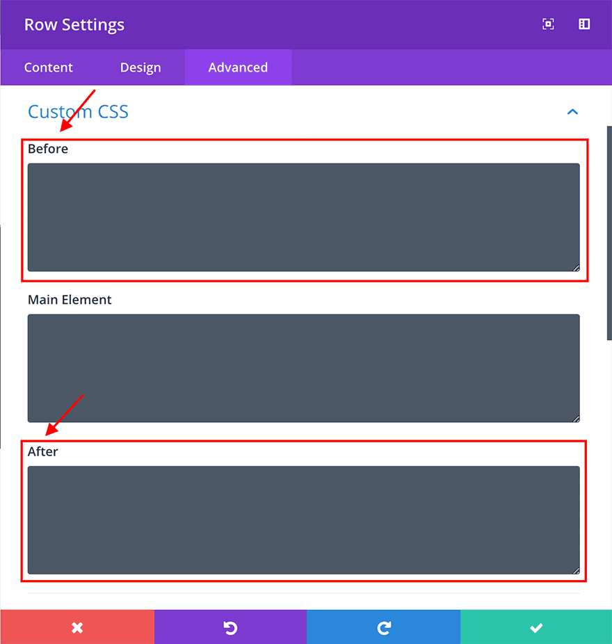 Fortunately Divi provides easy access to ::before and ::after pseudo-elements with much less hassle. In fact, if you have ever opened up the “Advanced” tab for any module to add custom CSS code, you’ll have seen the areas that we are referring to.