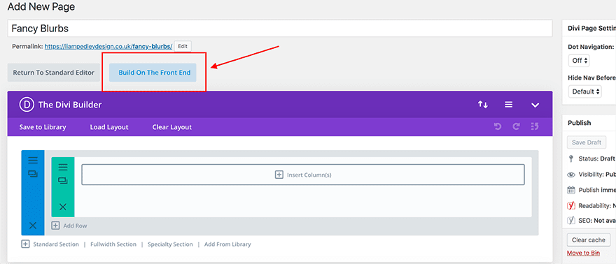 For this tutorial we just need a copy of the Divi theme and a blank slate. To begin with we’ll create a new page and, after adding a page title, click on the visual builder.