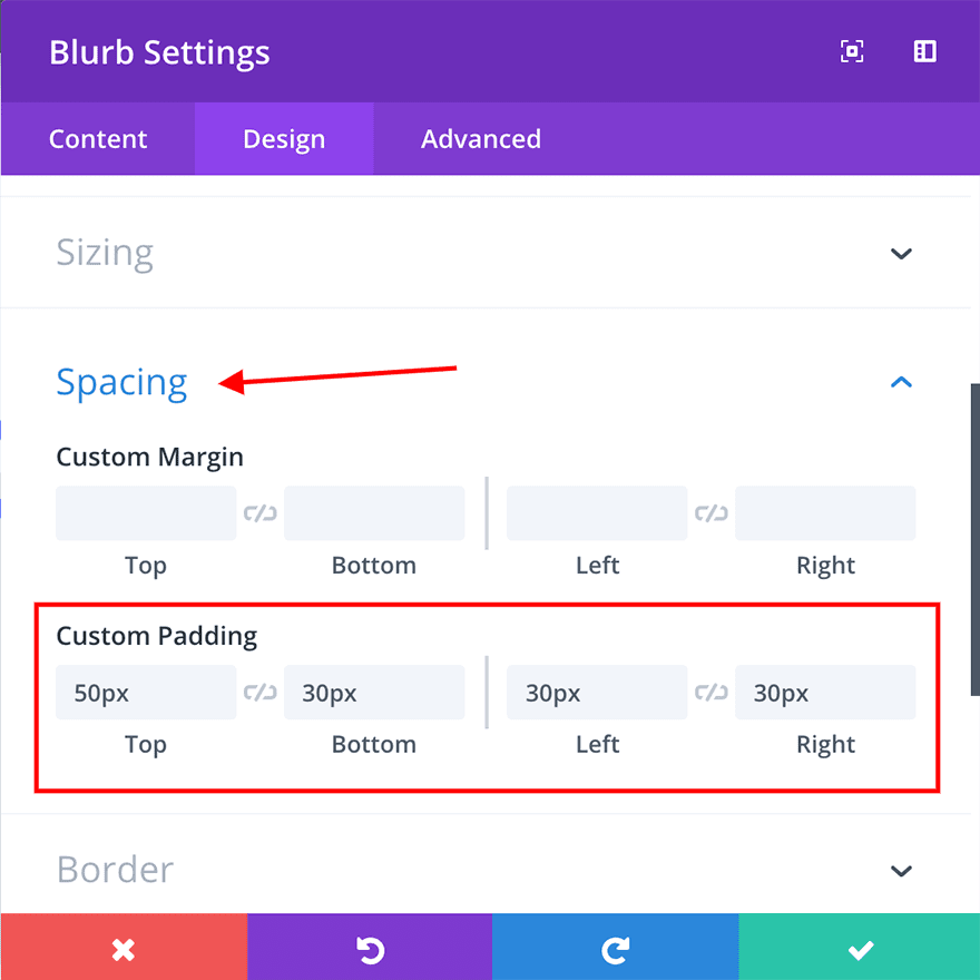 This will simply allow any elements we create in the next steps to be visible wherever they overlap the edges of our blurb module.