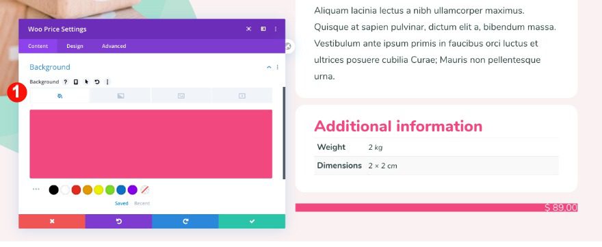* When you add a new and old sale price to a product, the woo price module will not show both of them in the theme builder. Check on the actual product page to see how the final design looks.