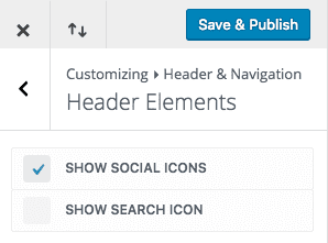 Go to Header & Navigation > Header Elements and check the box Show Social Icons