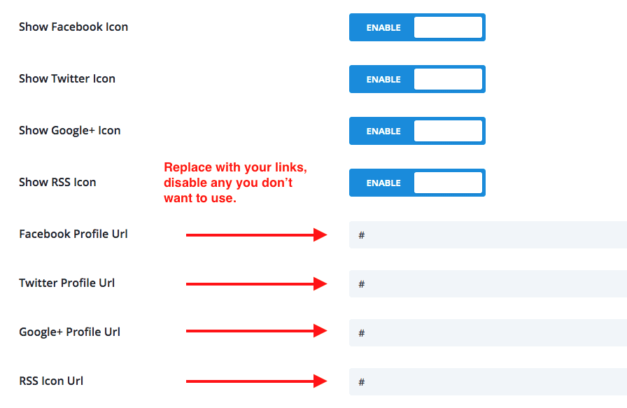 So first make sure you’ve set up your social links. Go to Divi Theme Options > General and add your URLs to your social media pages