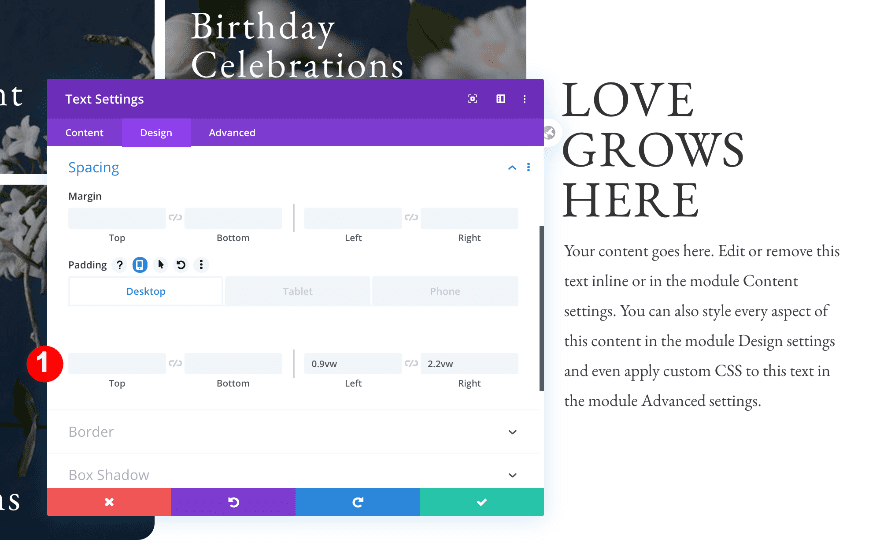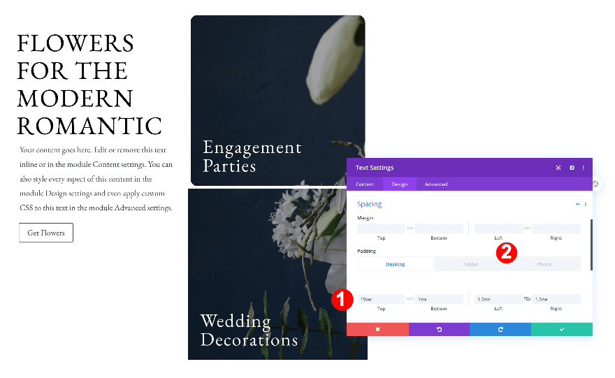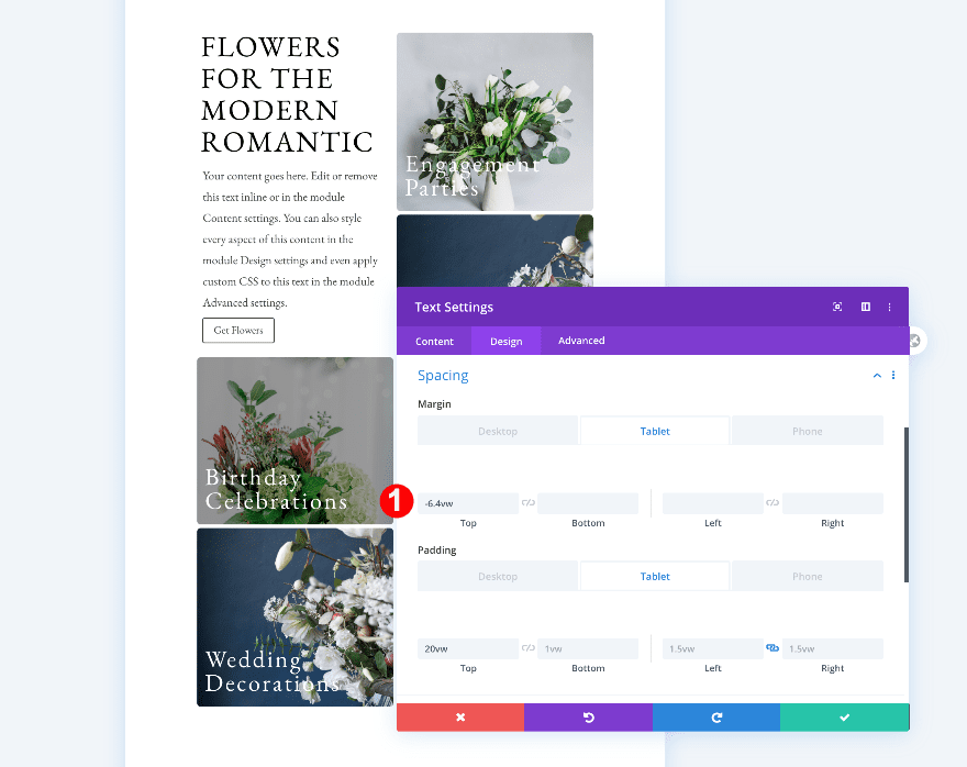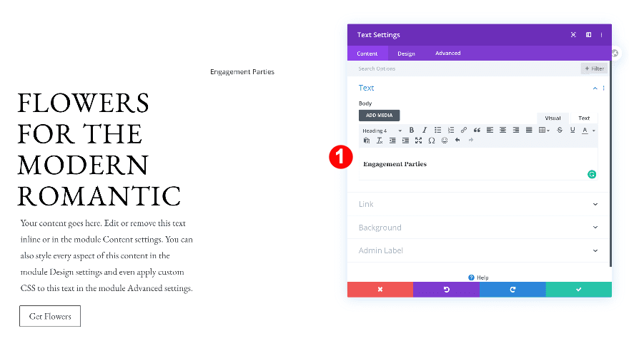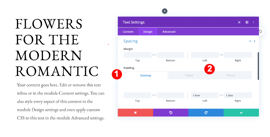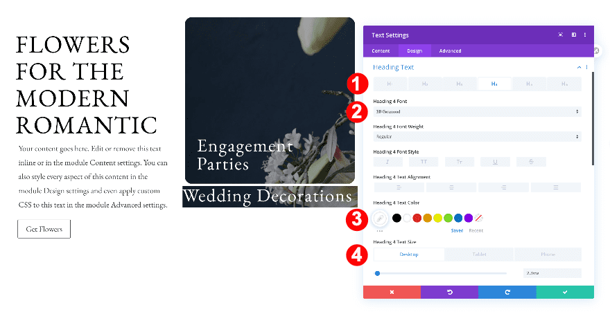 Move on to the design tab and change the H4 text settings.