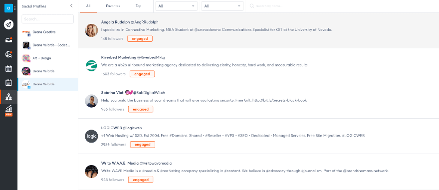 - Fans and Followers: This will show you all the people who have engaged with your channels lately. You can label them and see any ongoing engagement you’ve had with them.