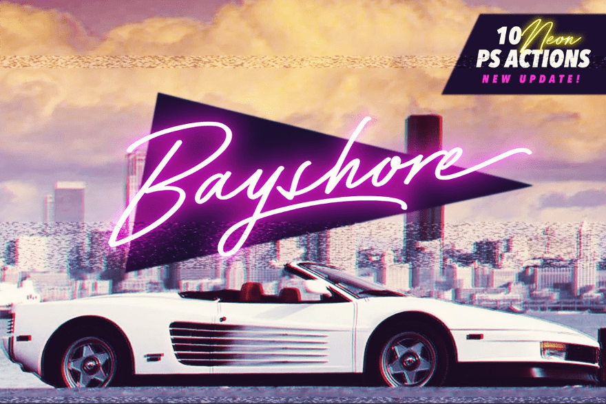 This font with its neon colors makes me want to go a few days without shaving and drive my Ferrari down the streets of Miami wearing my rad blazer with cool drums blasting. Itβs a hand-drawn font thatβs ideal for logos and products. It also includes a few Photoshop actions.