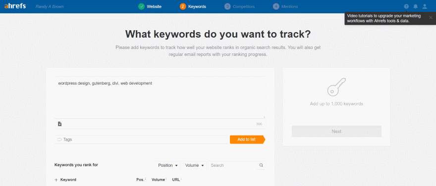 Setting up Ahrefs