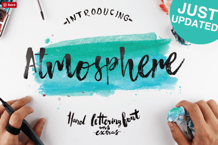 Atmosphere is a hand-drawn font with natural brush strokes to create an authentic brush texture. It includes upper and lowercase characters, numbers, punctuation, and symbols. It also comes with 20 watercolor splotches to use in your typographic pieces. Itβs free for personal and commercial use.