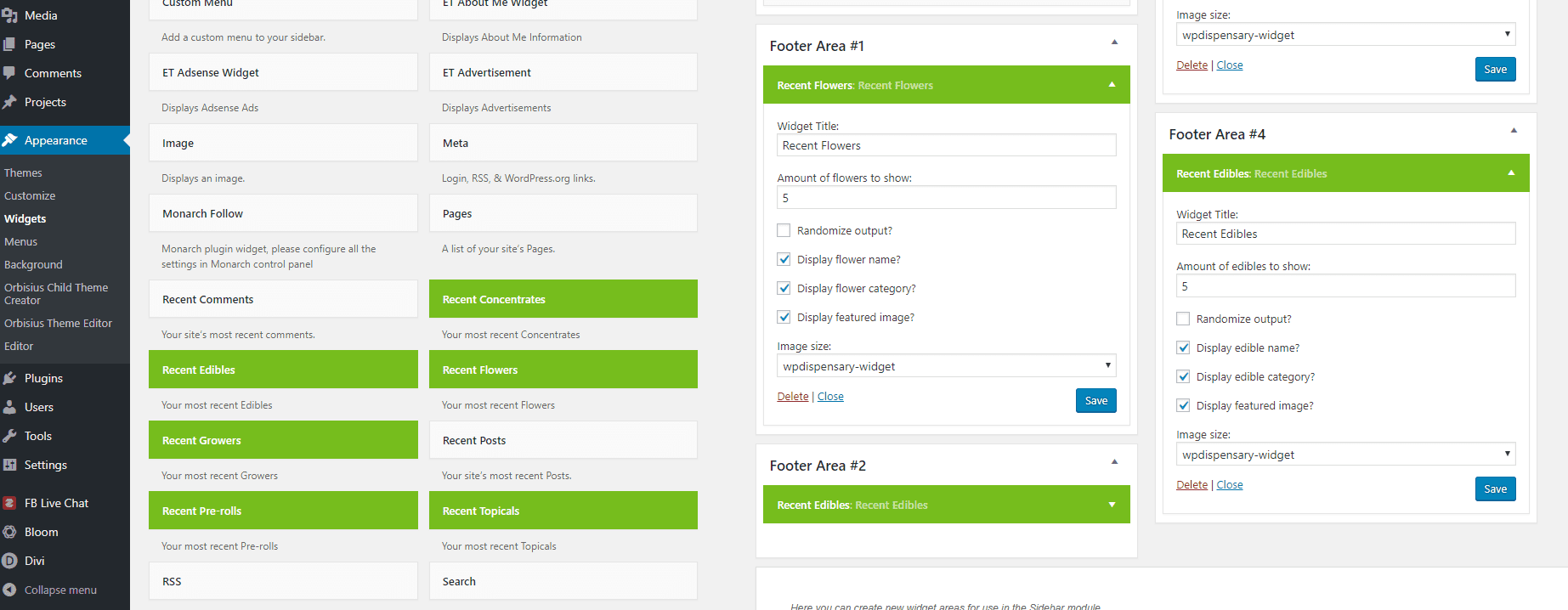 Just head to Appearance -> Widgets in your WP dashboard, and you’ll see some gnarly green widgets. As you probably guess, these are the WP Dispensary widgets that you’re going to be playing with.
