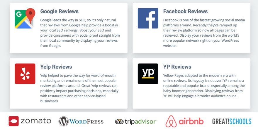 Additionally, you can use a plugin like WP Business Reviews to aggregate and grab multiple reviews that you want to highlight as testimonials on your site. Because Google loves testimonials for local SEO. They’re a trust signal that indicates to both the algorithms and people that you do what you say you do.