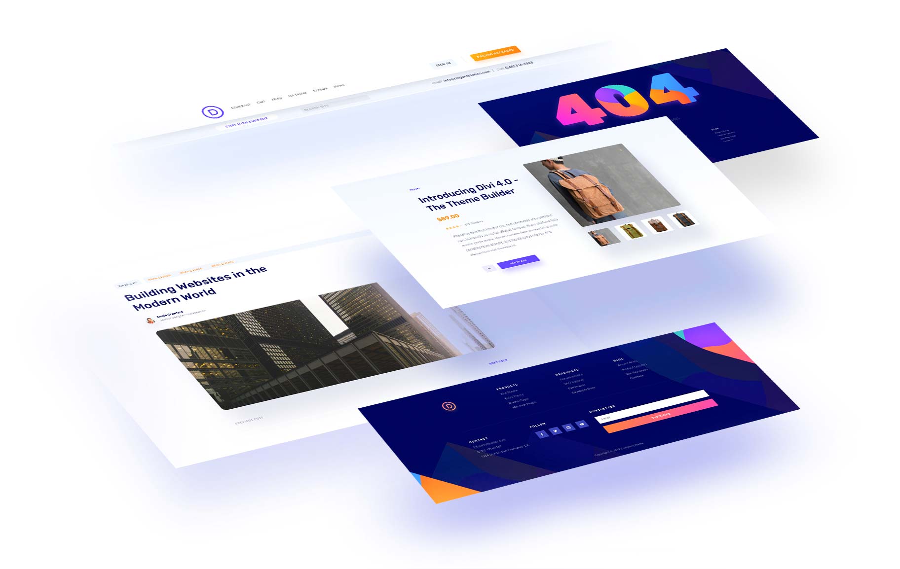 Divi 4.0 is a monumental change for Divi. It breaks the Divi Builder free from post content design and extends its functionality across your entire website using a brand new Theme Builder interface that we think is the best in the business. Divi isnβt just a Page Builder anymore, itβs a Theme Builder, and we canβt wait to see all the amazing new websites you create with it. To give you a little inspiration, we created 6 complete website demos using the new Divi Theme Builder. Each of these includes custom headers, footers, post templates, product templates, category templates and 404 pages built entirely in Divi!