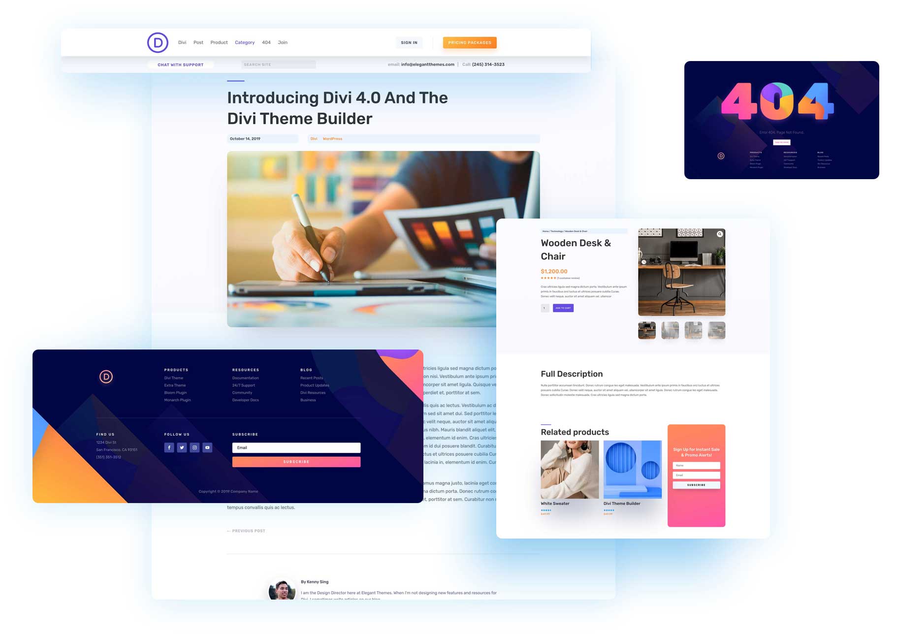 Today is a day that many of you have been waiting for. Today I am proud to announce the release of Divi 4.0, including the brand new Divi Theme Builder. The Theme Builder takes the power of the Divi Builder and extends it to all areas of the Divi Theme, allowing you to build custom headers, footers, category pages, product templates, blog post templates, 404 pages and more. The Theme Builder brings together some of Diviβs most important features, such as Dynamic Content and WooCommerce Modules, along with the amazing design power of the builder itself to give you ultimate control over your entire website. Divi 4.0 is a game-changer.