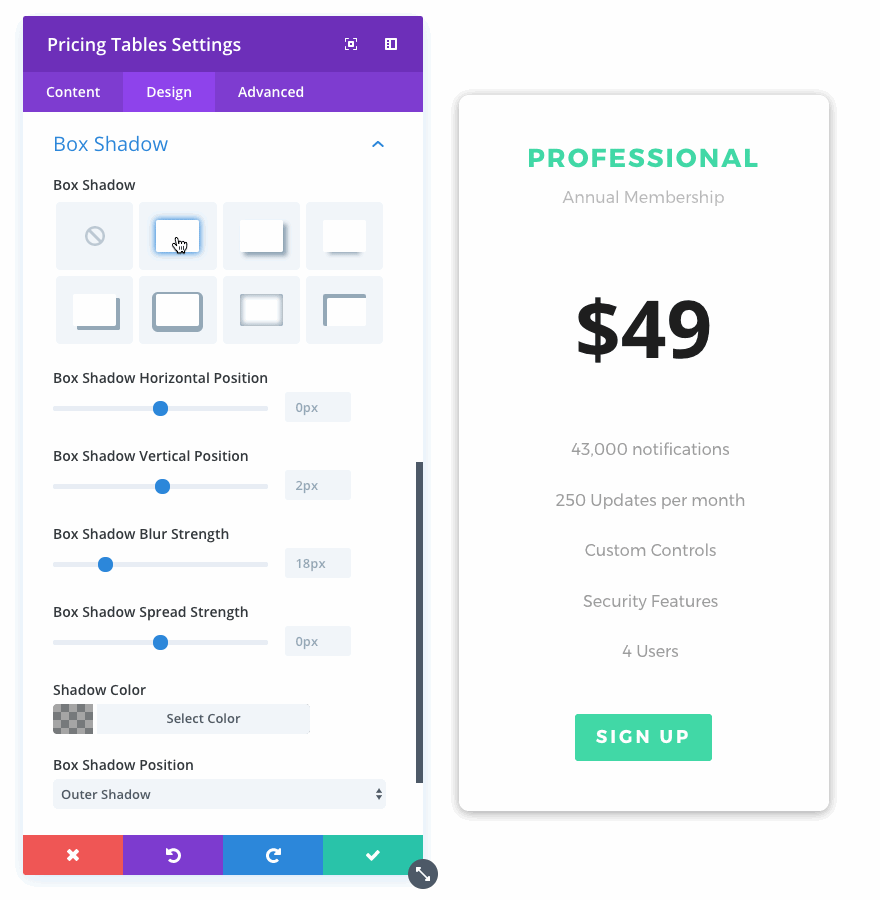You will be surprised how many cool designs can be created using Divi’s new box shadow options.