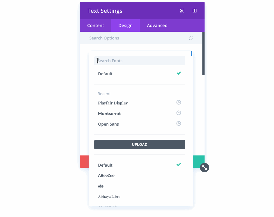 Whenever you use a font in the Divi Builder, that font gets added to your “Recent Fonts” list, which is quickly accessible at the top of the font selection menu. When you are designing a page with custom fonts, your desired font will always be right where you want it at the top of the font list! No need to remember the name of the font or to hunt through the menu. This saves so much time.