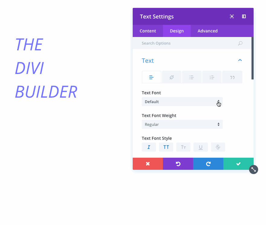 You can now customize your list styles in the Divi text module. Change the font, font style, text size and color. Customize the list style type, position and indentation.