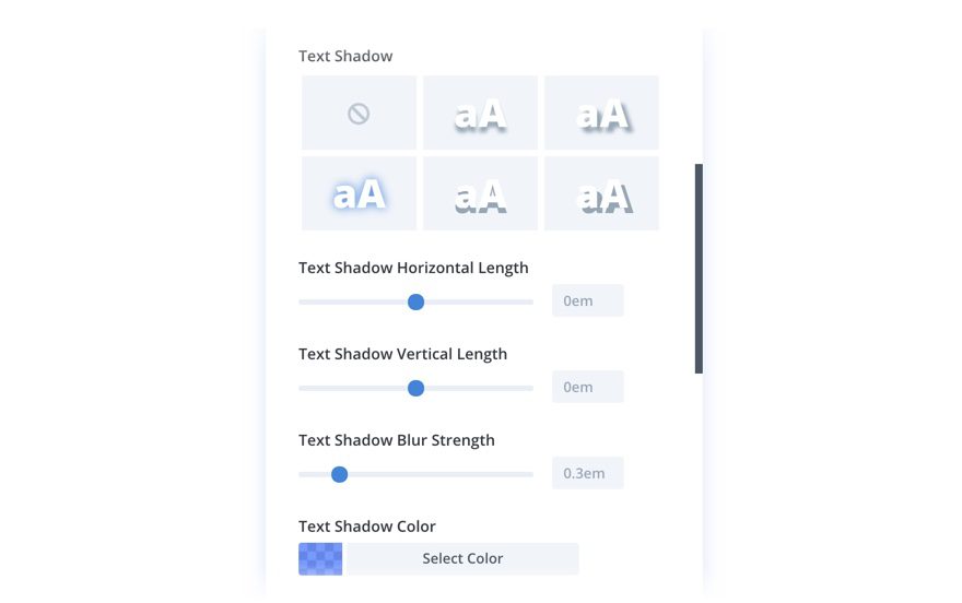 The Divi Builder is equipped with a brand new interface for controlling text shadows in every module, and this new interface can be found within all text option groups.
