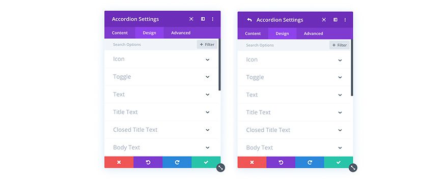 Not only have we added tons of new options to existing option groups, we have also harmonized the available options with parent and child modules so that when you customize a sub element, like a slider slide or a tab within a tabs module, you will always get the same set of design options for both the parent element and the child element. This means that a lot of new design settings are now available for sub elements that were previously missing.