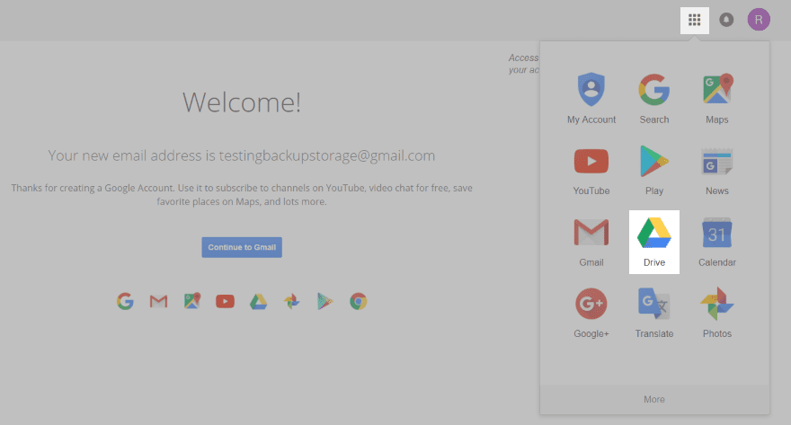 All that’s required to have access to Google Drive is to have a Google account. To see Google Drive, create or sign in to your Google account and select the square made up of dots in the upper right corner. It will open a window with lots of Google tools and services. Click the Drive icon.