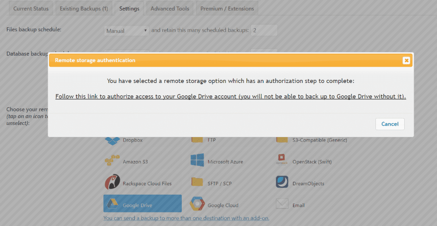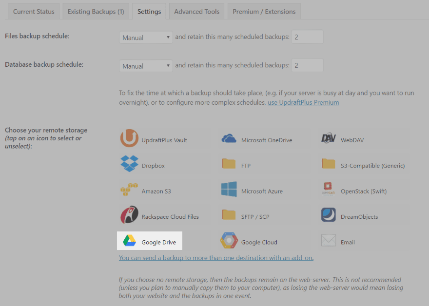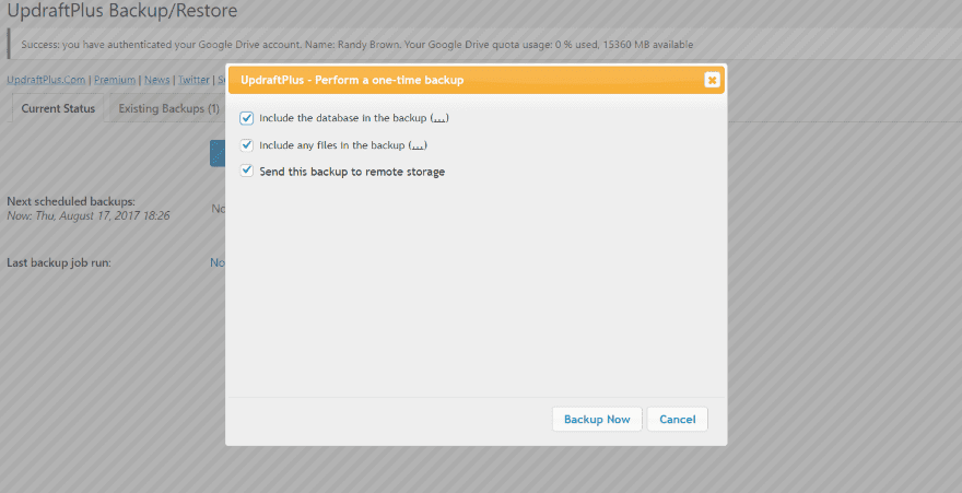 Google Drive is an excellent choice to store your WordPress backups remotely and UpdraftPlus makes the task easy. As important as recent backups are, and considering that Google Drive and UpdraftPlus automates the task of storing them in a remote location for free, there’s no reason not to have a recent backup.