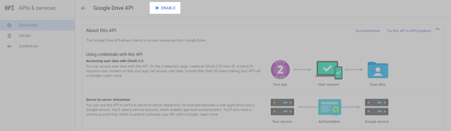 Here, click on Drive API. Alternately you can search for it and click on it when it comes up.