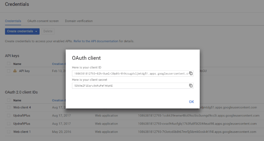 Once you’ve completed the instructions you’ll be given your Client ID and Client Secret codes. Paste them into the fields. Choose which files to store, and save your settings.