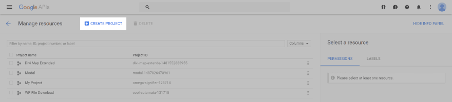 Enter a name for the project and select Create. Once the project is completed (the notification in the upper right will let you know), click the Google APIs logo to go to the API File Manager.