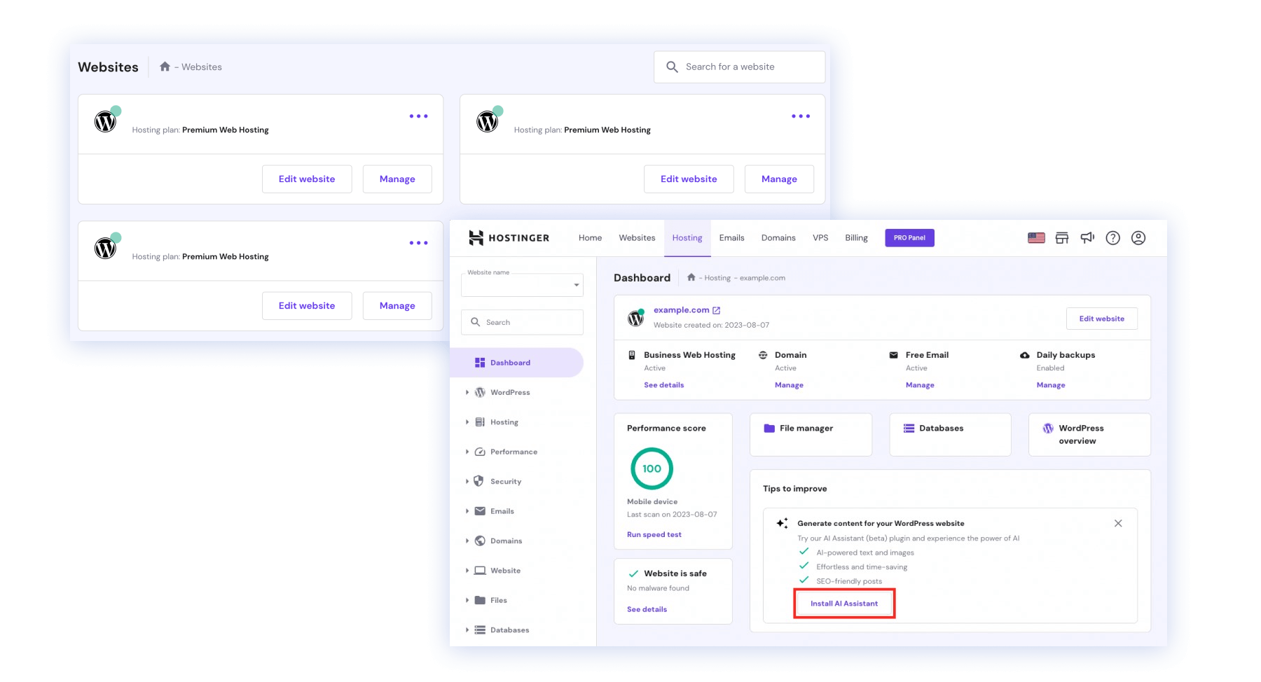Hostinger’s WordPress Managed Hosting is ideal for individuals and businesses looking for high performance, security, site management tools, and innovative features (like their AI Assistant) at an affordable price.
